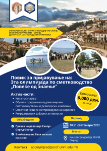 Почитувани студенти, со задоволство ве информираме дека Катедрата по Сметководство и ревизија објавува повик за пријавување за учество на Трета олимпијада по сметководство – „Повеќе од знаење“. Настанот ќе се одржи во периодот од 18-21 септември 2023 г. во Конгресниот центар на УКИМ во Охрид. Истиот ќе биде од натпреварувачки, рекреативен и забавен карактер. Меѓу другото, свои презентации и обуки ќе имаат и дел од реномирани, меѓународни ревизорски и сметководствени фирми, со можности за конекција на студентите со истите.